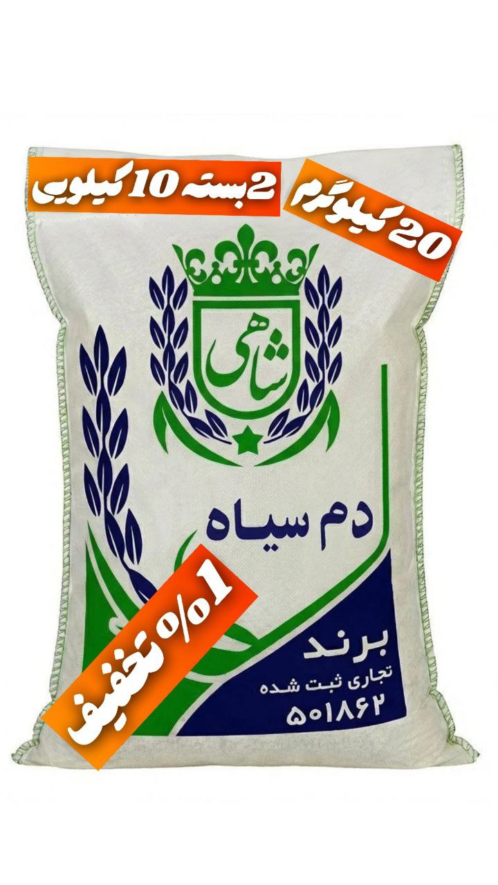 برنج ایرانی دم سیاه عطری فریدونکنار برند شاهی _ 20 کیلوگرم + ارسال رایگان با پست پیشتاز