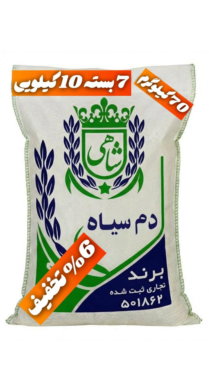 برنج ایرانی دم سیاه عطری فریدونکنار برند شاهی _ 70 کیلوگرم + ارسال رایگان با پست پیشتاز