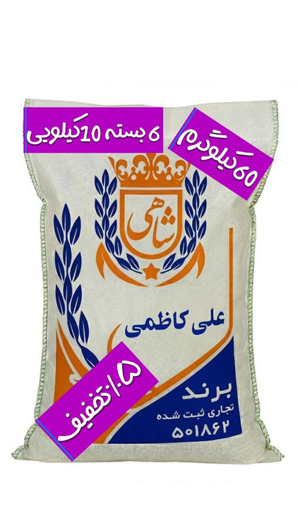 برنج ایرانی علی کاظمی عطری فریدونکنار برند شاهی _ 60 کیلوگرم + ارسال رایگان با پست پیشتاز