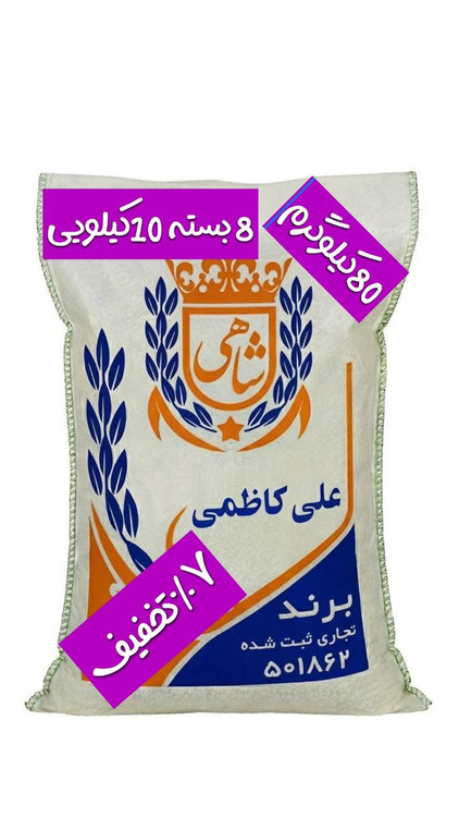 برنج ایرانی علی کاظمی عطری فریدونکنار برند شاهی _ 80 کیلوگرم + ارسال رایگان با پست پیشتاز