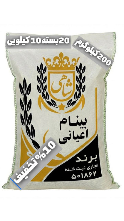 برنج ایرانی بینام اعیانی عطری ممتاز فریدونکنار برند شاهی _ 200 کیلوگرم + ارسال رایگان با پست پیشتاز