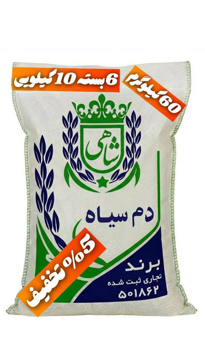 برنج ایرانی دم سیاه عطری فریدونکنار برند شاهی _ 60 کیلوگرم + ارسال رایگان با پست پیشتاز