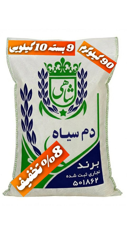 برنج ایرانی دم سیاه عطری فریدونکنار برند شاهی در وزن ها و بسته بندی های 10 و 5 کیلویی یکی از مرغوبترین و محبوبترین ارقام برنج ایرانی است که به طور اختصاصی در شالیزارهای فریدونکنار تولید میشود ، این منطقه به دلیل خاک حاصلخیز ، آب و هوای معتدل مرطوب و دسترسی عالی به آب شیرین مهد تولید برنج های فوق العاده با کیفیت شمال ایران به شمار میرود