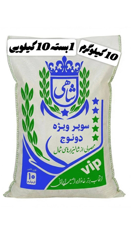 برنج ایرانی طارم سوپر ویژه دونوج فوق ممتاز عطری فریدونکنار برند شاهی در وزن ها و بسته بندی های 10 و 5 کیلویی یکی از مرغوبترین و محبوبترین ارقام برنج ایرانی است که به طور اختصاصی در شالیزارهای فریدونکنار تولید میشود ، این منطقه به دلیل خاک حاصلخیز ، آب و هوای معتدل مرطوب و دسترسی عالی به آب شیرین مهد تولید برنج های فوق العاده با کیفیت شمال ایران به شمار میرود