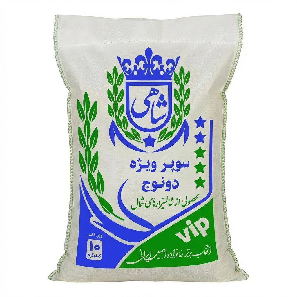 برنج ایرانی طارم سوپر ویژه دونوج فوق ممتاز عطری فریدونکنار برند شاهی در وزن ها و بسته بندی های 10 و 5 کیلویی یکی از مرغوبترین و محبوبترین ارقام برنج ایرانی است که به طور اختصاصی در شالیزارهای فریدونکنار تولید میشود ، این منطقه به دلیل خاک حاصلخیز ، آب و هوای معتدل مرطوب و دسترسی عالی به آب شیرین مهد تولید برنج های فوق العاده با کیفیت شمال ایران به شمار میرود