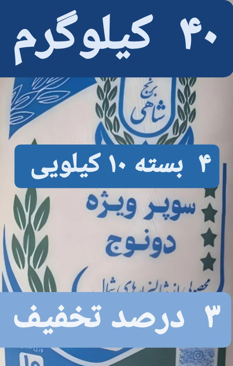 برنج طارم دونوج وحشی سوپر ویژه وزن خالص ۴۰ کیلوگرم + ارسال رایگان تا درب منزل