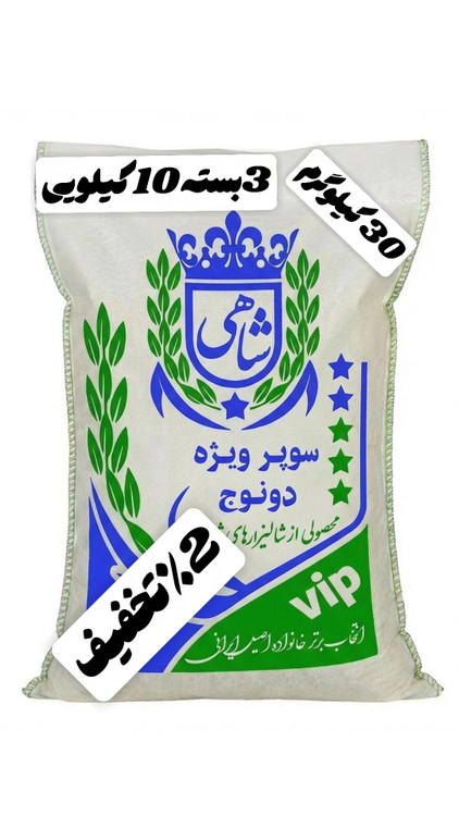 برنج ایرانی طارم سوپر ویژه دونوج فوق ممتاز عطری فریدونکنار برند شاهی _ 30 کیلوگرم + ارسال رایگان با پست پیشتاز