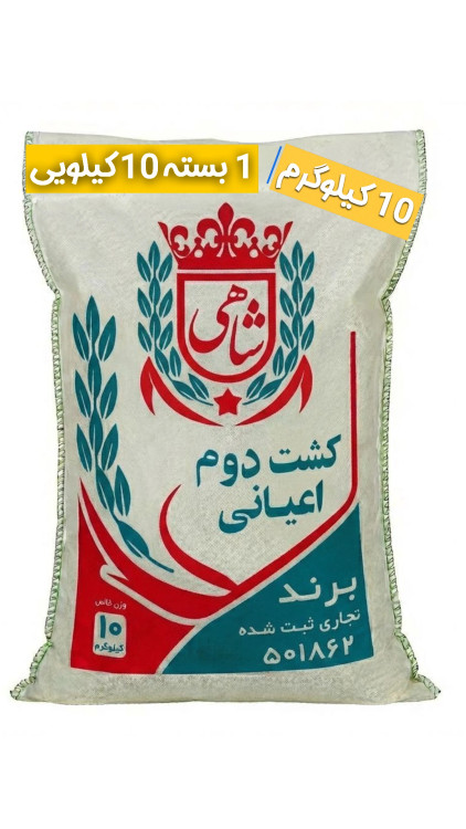 برنج ایرانی طارم هاشمی کشت دوم عطری فریدونکنار برند شاهی _ 10 کیلوگرم + ارسال رایگان با پست پیشتاز