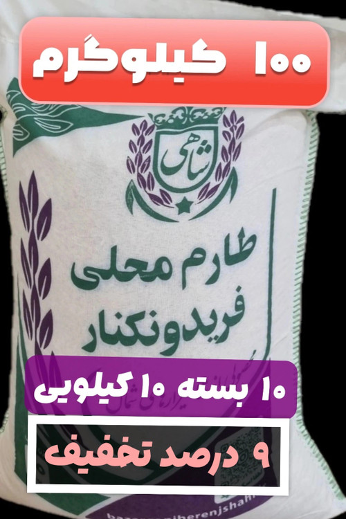 برنج طارم محلی فریدونکنار وزن خالص ۱۰۰ کیلوگرم + ارسال رایگان تا درب منزل
