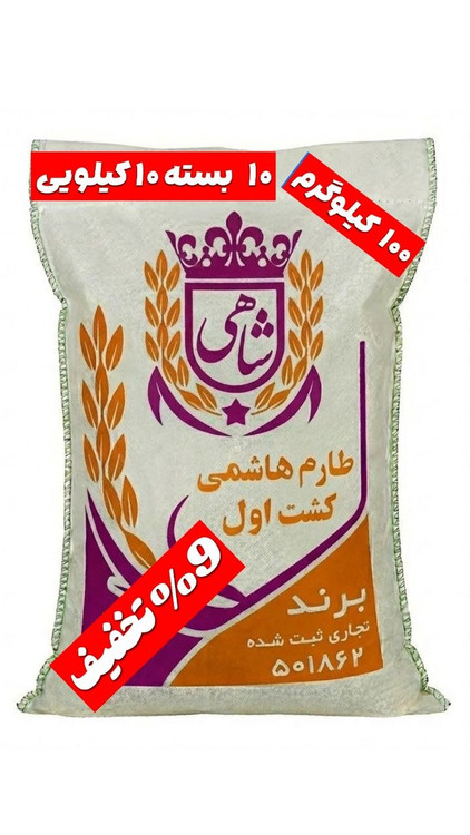 برنج ایرانی طارم هاشمی کشت اول عطری فریدونکنار برند شاهی در وزن ها و بسته بندی های ۱۰ و ۵ کیلویی یکی از مرغوبترین و محبوبترین ارقام برنج ایرانی است که به طور اختصاصی در شالیزارهای فریدونکنار تولید میشود ، این منطقه به دلیل خاک حاصلخیز ، آب و هوای معتدل مرطوب و دسترسی عالی به آب شیرین مهد تولید برنج های فوق العاده با کیفیت شمال ایران به شمار میرود