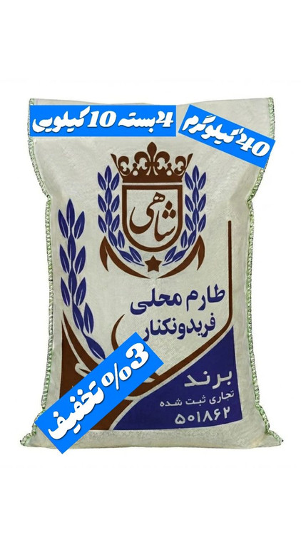 برنج ایرانی طارم محلی فریدونکنار برند شاهی _ 40 کیلوگرم + ارسال رایگان با پست پیشتاز