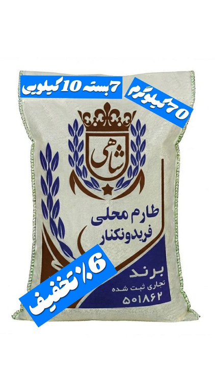 برنج ایرانی طارم محلی فریدونکنار برند شاهی _ 70 کیلوگرم + ارسال رایگان با پست پیشتاز