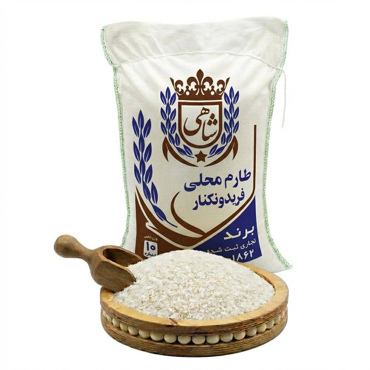 برنج ایرانی طارم محلی فریدونکنار برند شاهی در وزن ها و بسته بندی های ۱۰ و ۵ کیلویی یکی از مرغوبترین و محبوبترین ارقام برنج ایرانی است که به طور اختصاصی در شالیزارهای فریدونکنار تولید میشود ، این منطقه به دلیل خاک حاصلخیز ، آب و هوای معتدل مرطوب و دسترسی عالی به آب شیرین مهد تولید برنج های فوق العاده با کیفیت شمال ایران به شمار میرود