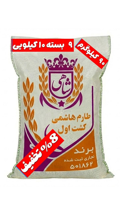 برنج ایرانی طارم هاشمی کشت اول عطری فریدونکنار برند شاهی در وزن ها و بسته بندی های ۱۰ و ۵ کیلویی یکی از مرغوبترین و محبوبترین ارقام برنج ایرانی است که به طور اختصاصی در شالیزارهای فریدونکنار تولید میشود ، این منطقه به دلیل خاک حاصلخیز ، آب و هوای معتدل مرطوب و دسترسی عالی به آب شیرین مهد تولید برنج های فوق العاده با کیفیت شمال ایران به شمار میرود