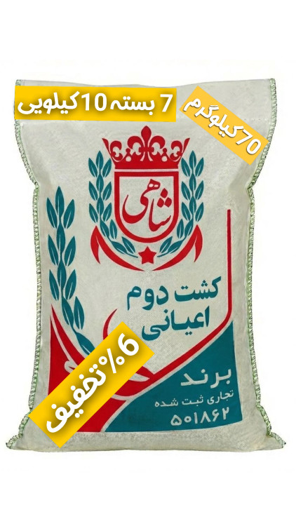 برنج ایرانی طارم هاشمی کشت دوم عطری فریدونکنار برند شاهی _ 70 کیلوگرم + ارسال رایگان با پست پیشتاز