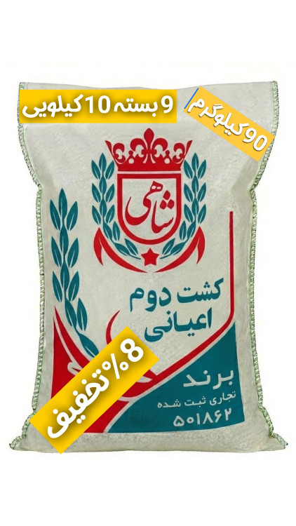 برنج ایرانی طارم هاشمی کشت دوم عطری فریدونکنار برند شاهی _ 90 کیلوگرم + ارسال رایگان با پست پیشتاز