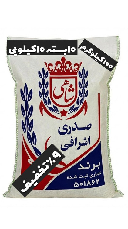 برنج ایرانی صدری اشرافی عطری فریدونکنار برند شاهی _ 100 کیلوگرم + ارسال رایگان با پست پیشتاز
